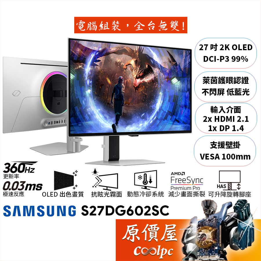 SAMSUNG三星 G6 S27DG602SC【27吋】電競螢幕/OLED/2K/360Hz/原價屋【廠商直送】活動贈