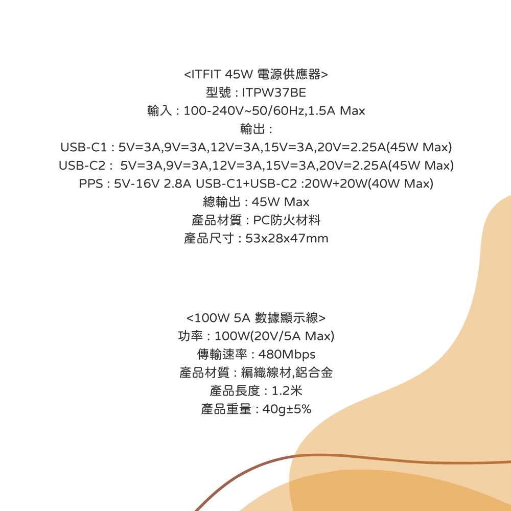 Samsung 三星 台灣原廠盒裝 ITFIT 45W雙孔 快充充電組 (內含充電器+5A LED 雙 Type C線)