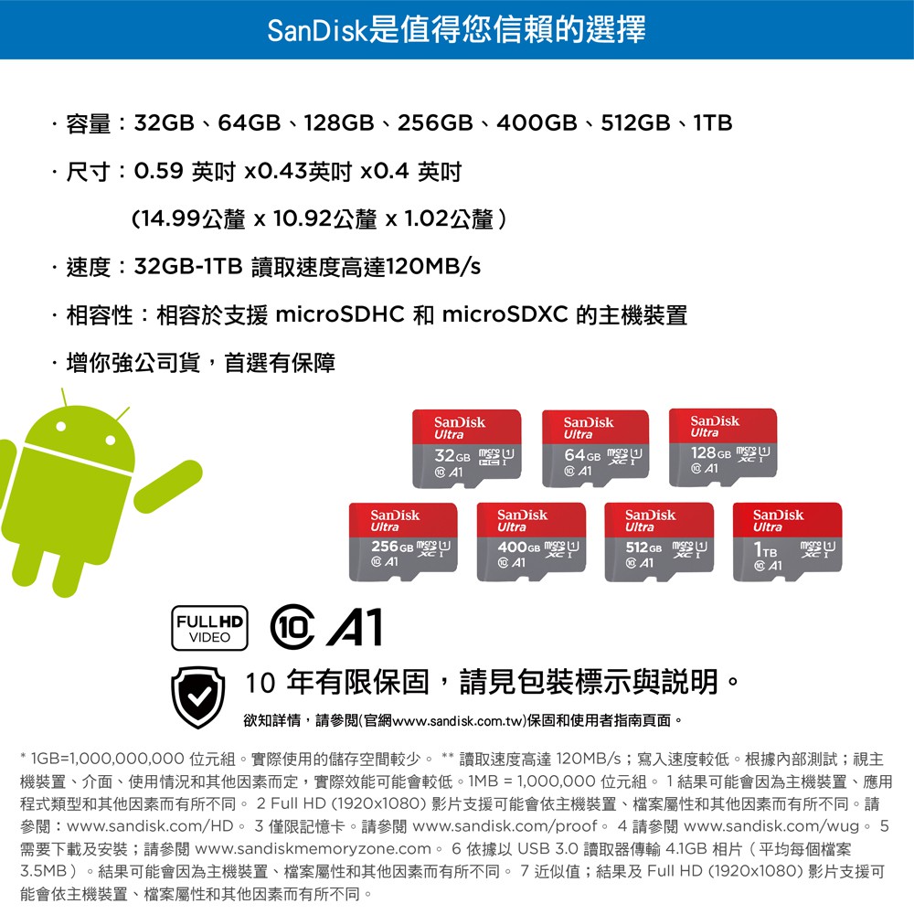 SanDisk Ultra microSDXC UHS-I (A1) 記憶卡 【256~512GB】公司貨