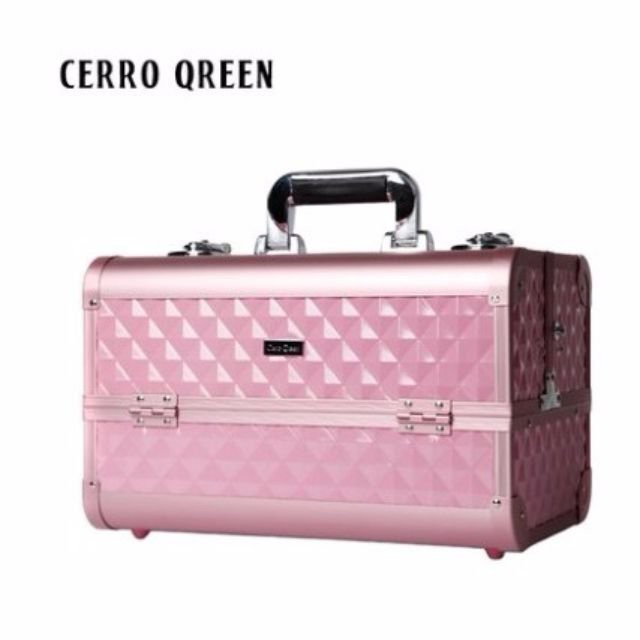 Cerro Qreen 專利商標 亮銀色 鑽石菱紋 化妝箱 手提肩背 美甲/新秘/彩妝師 粉紅色 黑色 手提箱 間背箱