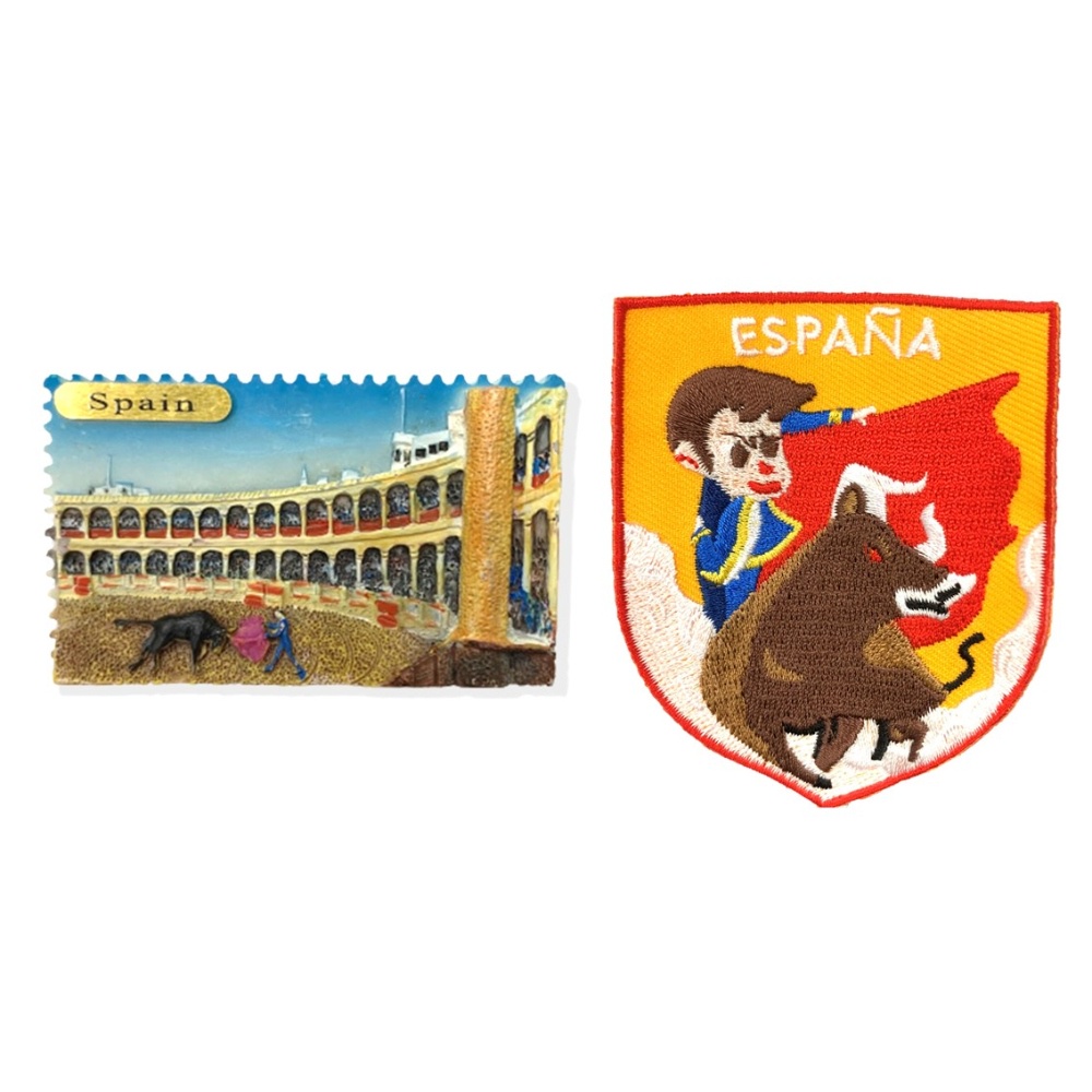 西班牙鬥牛場冰箱裝飾磁鐵+西班牙 鬥牛士 ESPANA肩章【2件組】磁鐵冰箱貼 可愛磁鐵 立體磁鐵 造型立體磁鐵 交換禮