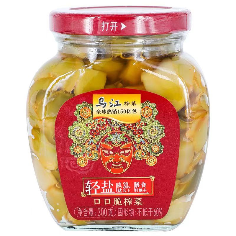 乌江榨菜 涪陵下饭菜 红油榨菜 微辣榨菜 開味榨菜 口口脆榨菜鮮榨菜片 黃花榨菜300g 瓶装 即食麻辣 开胃佐餐咸菜