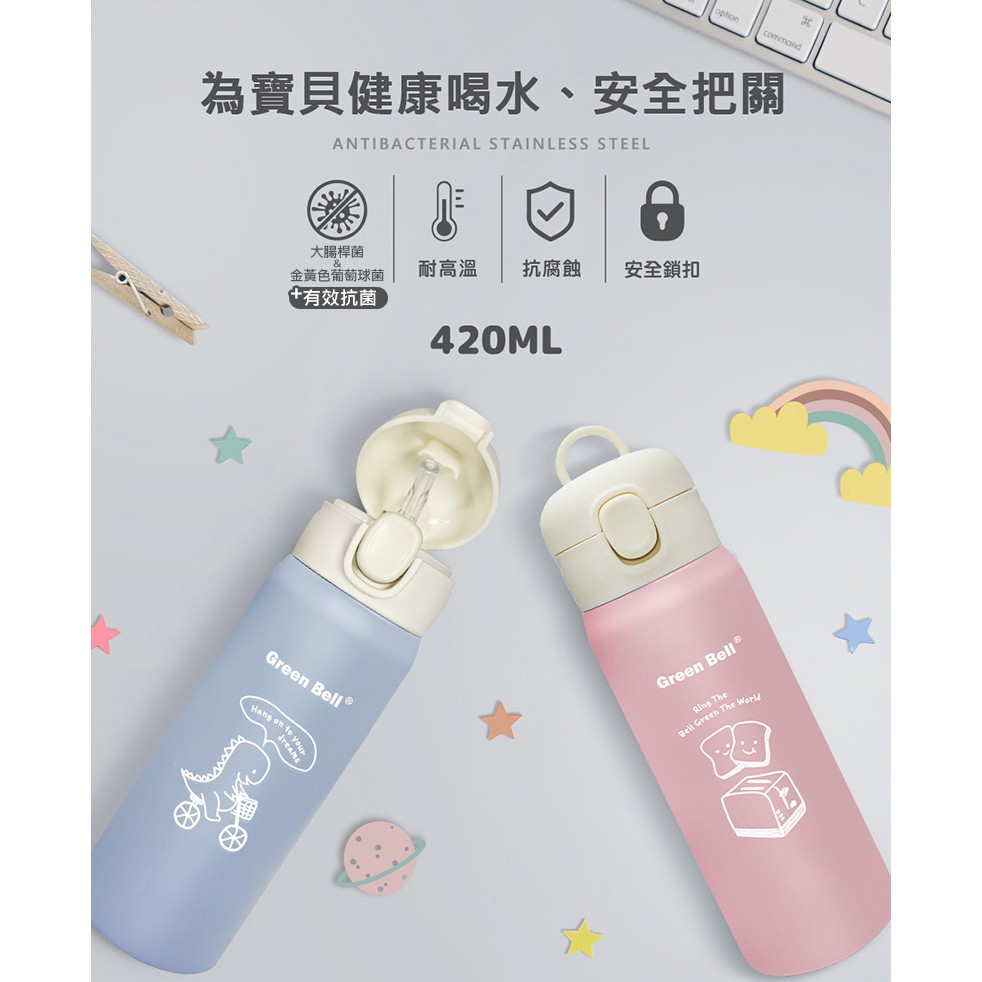 GREEN BELL 綠貝 304抗菌萌童保溫杯420ml 免運 現貨 廠商直送