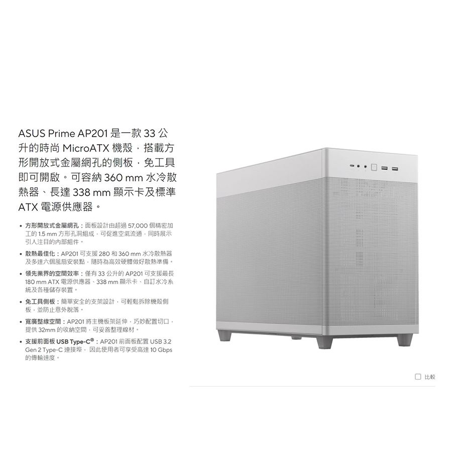 【免運直送】ASUS 華碩 Prime AP201 TG 黑/白 電腦機殼 機殼 MicroATX 光華商場 公司貨
