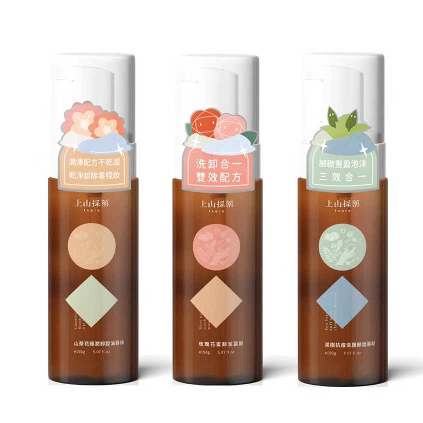 上山採藥 茶樹洗顏/玫瑰花蜜/山茶花 卸潔慕斯 150ml