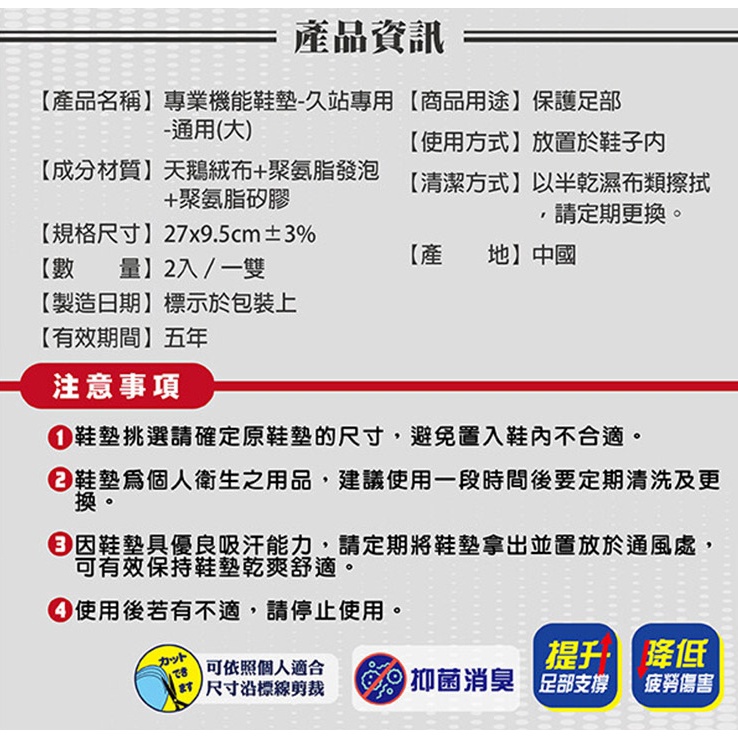 HUKUKU 福可專業級機能鞋墊-久站專用 尺寸通用可裁剪