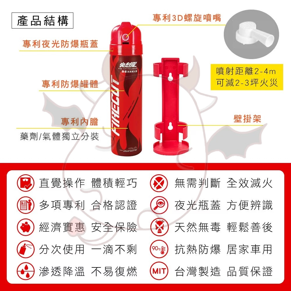 專利認證 防爆泡沫滅火器 家用滅火器 KINYO 車用滅火器 火剋星 噴就滅 汽車滅火器 居家滅火器
