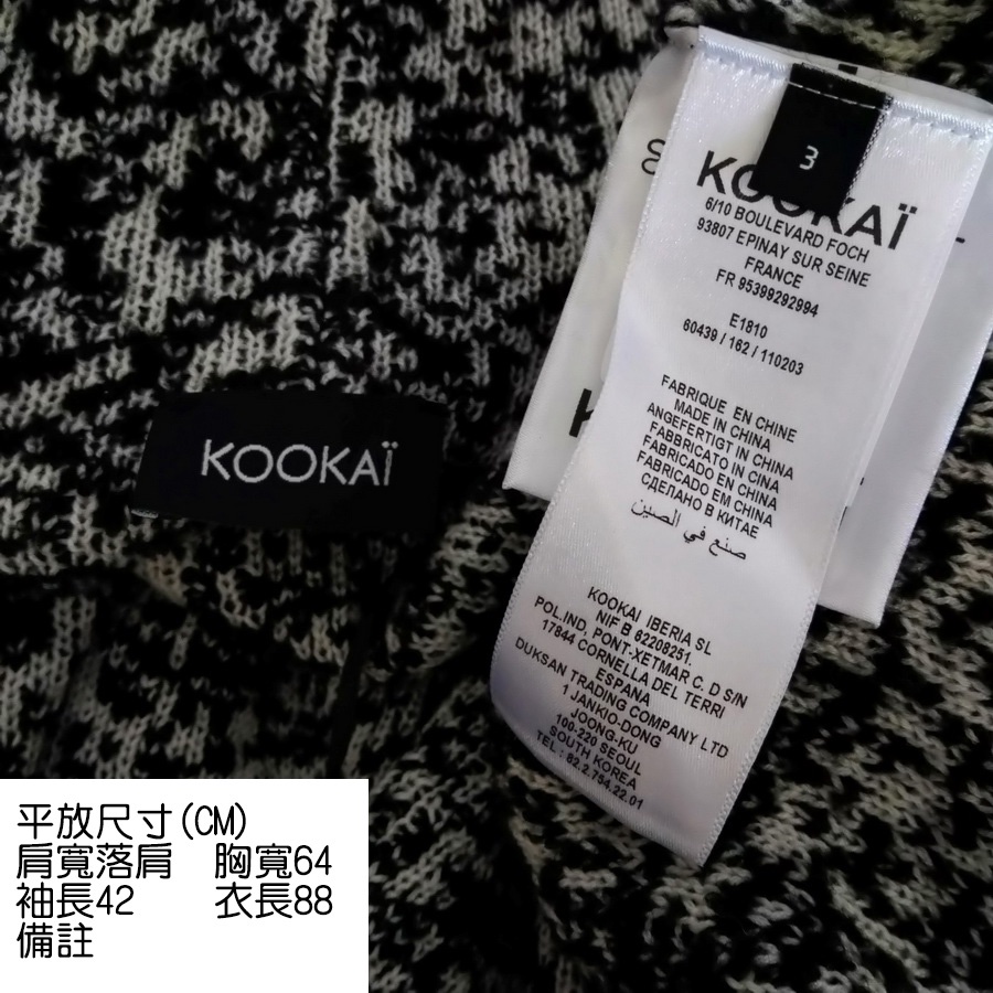 220201法國品牌KOOKAI黑灰點點長板毛衣罩衫上衣二手