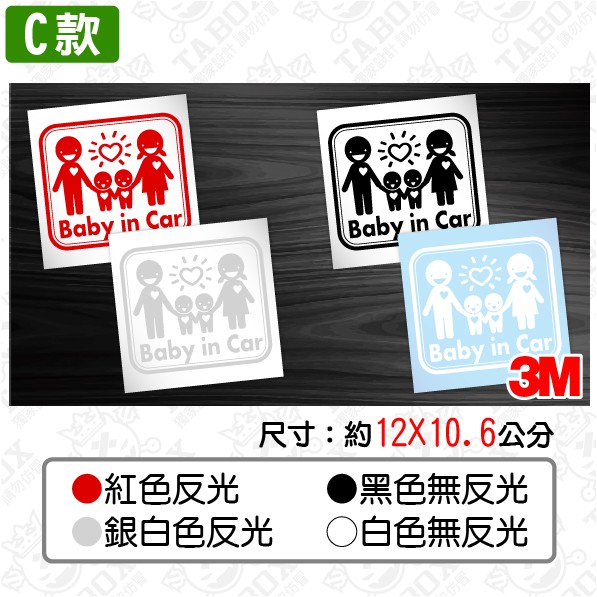 【貼BOX】全車系BABY IN CAR 全家福版 反光3M貼紙【編號ALL15】