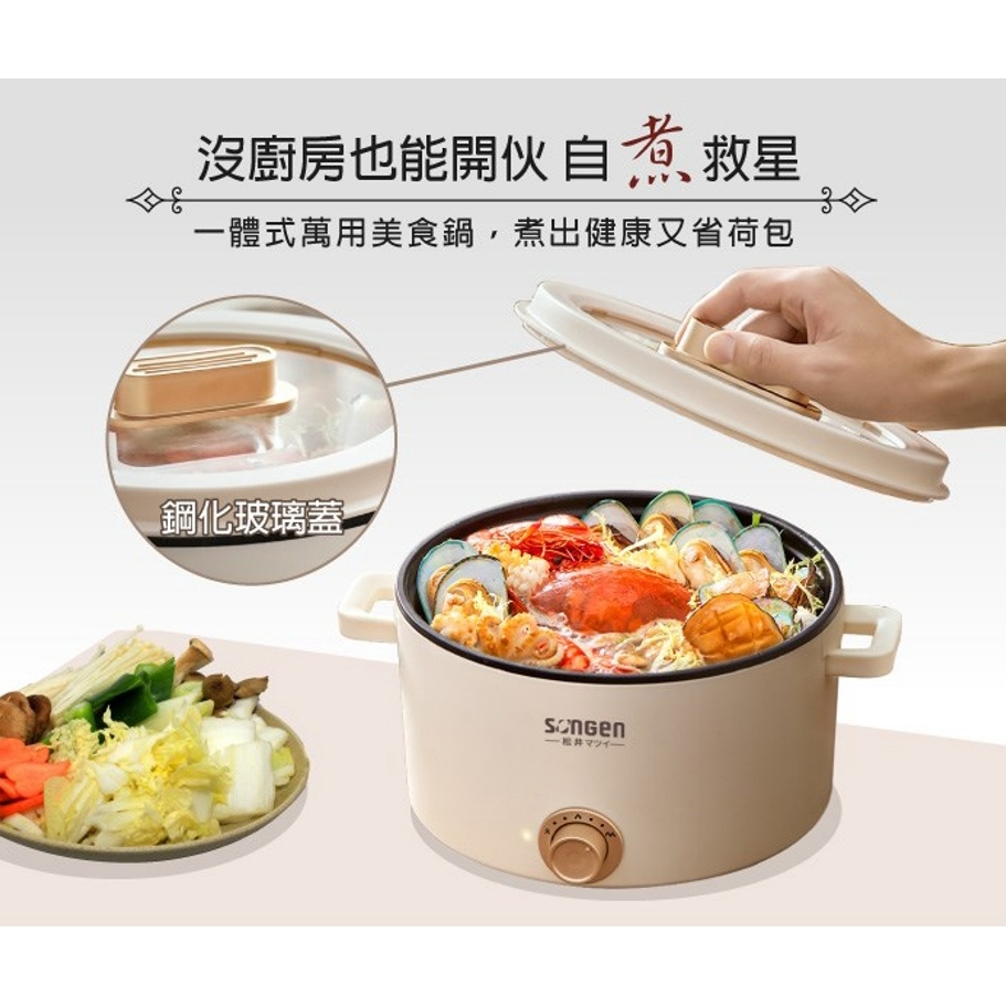 全新公司貨保固【SONGEN松井 多功能美食電火鍋 SG-177HS 米白色】料理鍋 電烤爐 美食鍋│質感家電