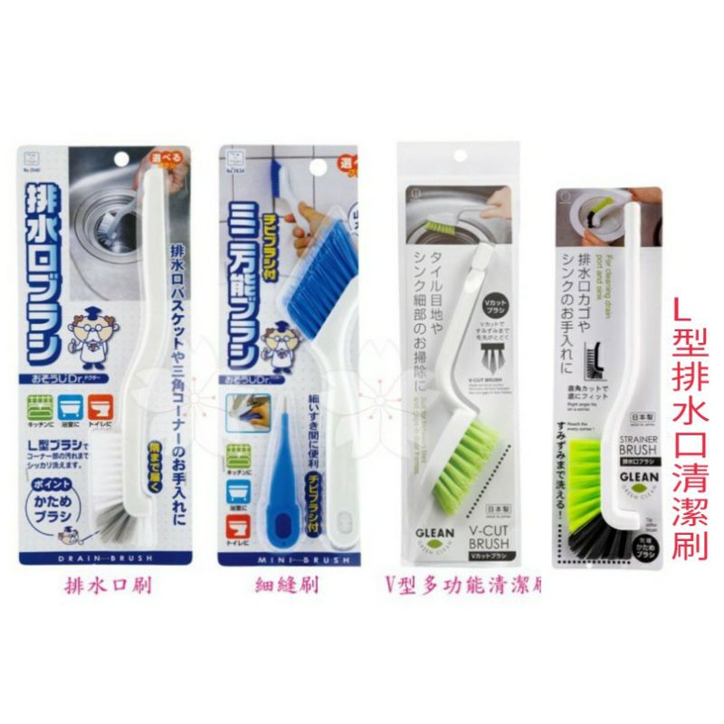 日本進口 KOKUBO 小久保 浴廁 廚房 排水口刷 細縫刷 附小刷 V型 多功能刷 L型 廣角排水口刷