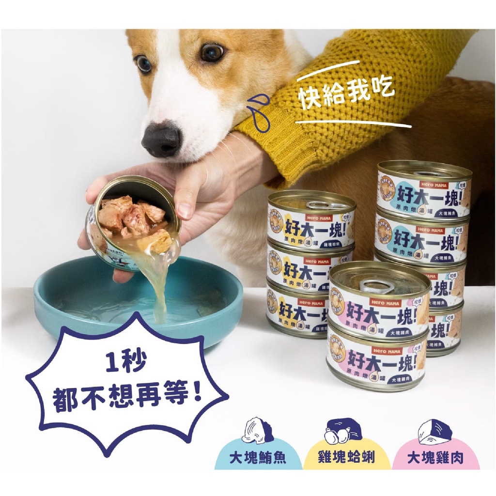【台灣 現貨免運】HeroMama 好大一塊 原肉燉湯罐 湯罐 貓罐 狗罐 副食罐 大塊鮪魚 雞塊蛤蜊 寵物食品 罐頭
