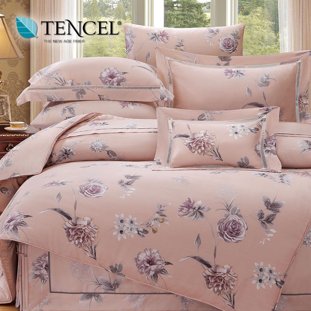 60支100%純天絲TENCEL【雙人 加大 特大組合】規格可選 兩用被床包四件組 七件式鋪棉床罩組 貝茉莉橘