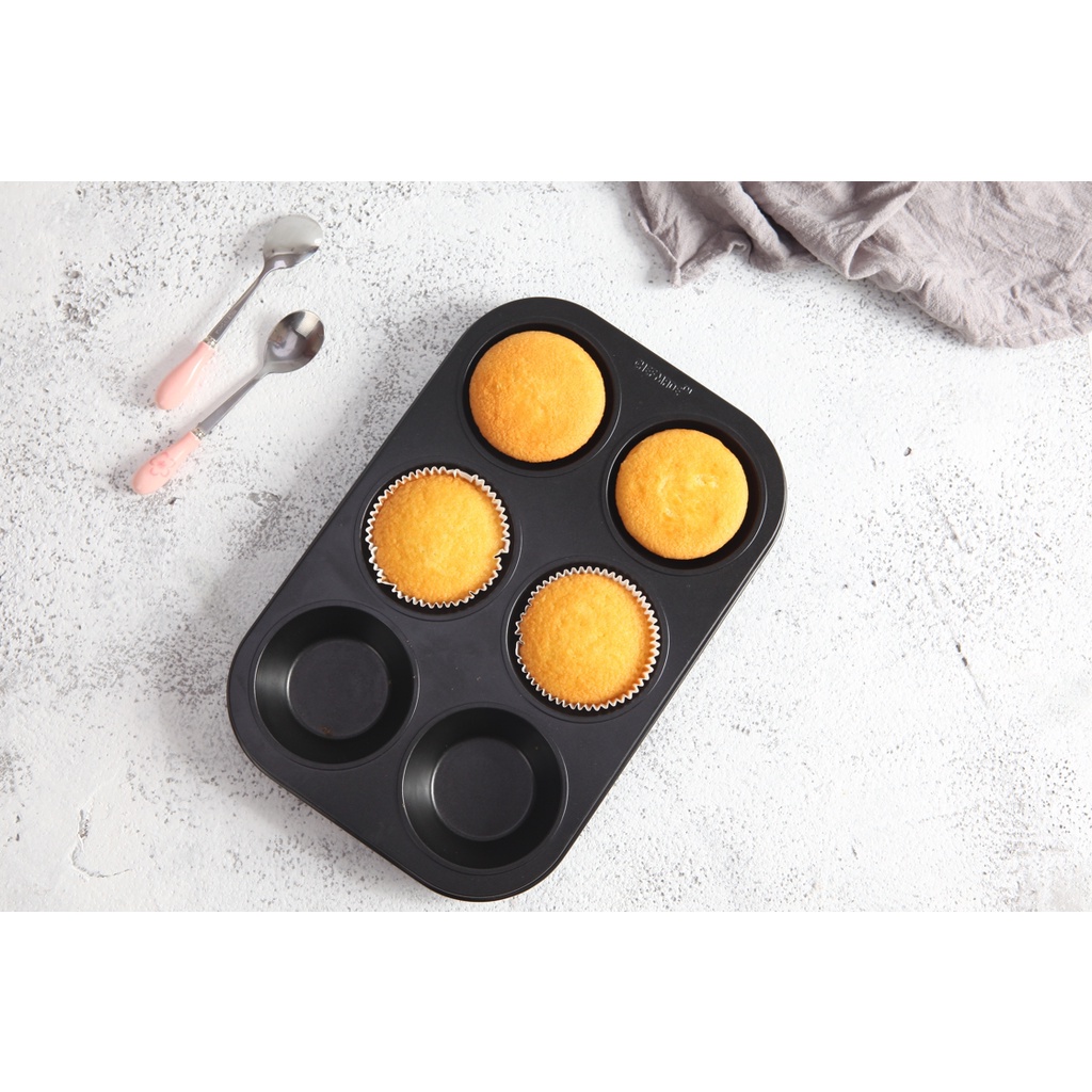 Chefmade學廚 不粘6連杯 瑪芬蛋糕模 烤盤 黑色 大號 麵包 瑪芬 烘焙器具 西點 杯子蛋糕 WK9711