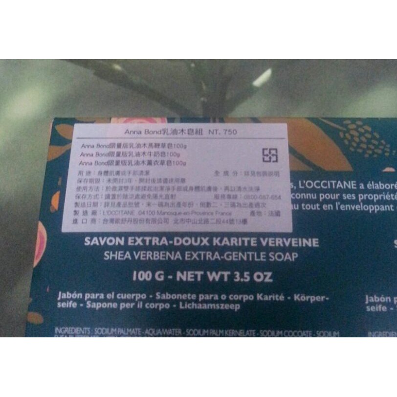 全新LˊOCCITANE歐舒丹anna bond限量版乳油木皂組(馬鞭草/牛奶/薰衣草)各100g/中文標/公司貨