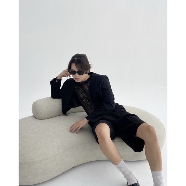 ShanGuangSelect_微墊肩無領短版西外 短版西裝外套 個性西外 東大門