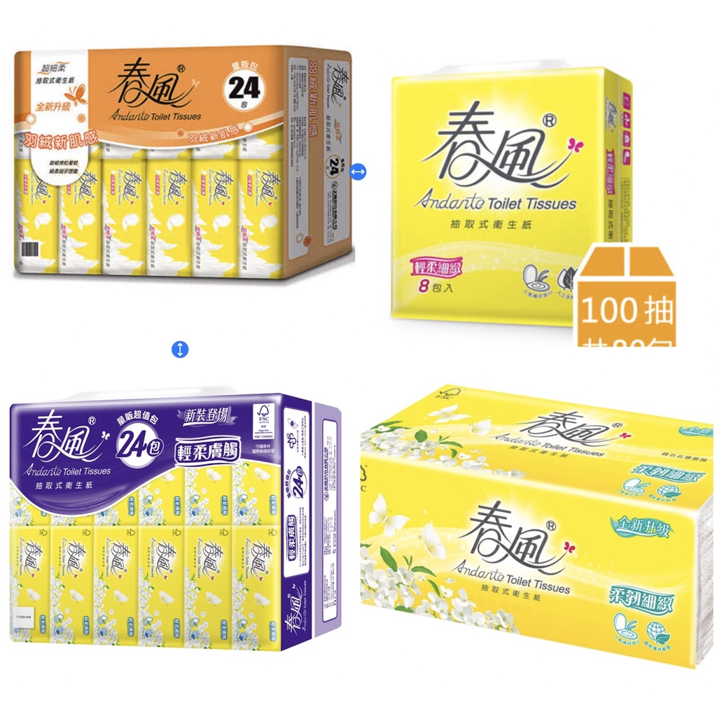 雙12終戰[有發票](免運費)春風110抽72包/24包超細柔/羽柔/柔韌細緻/輕柔膚觸抽取式衛生紙-春風