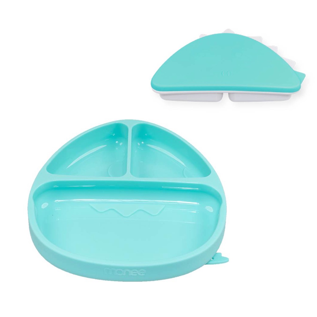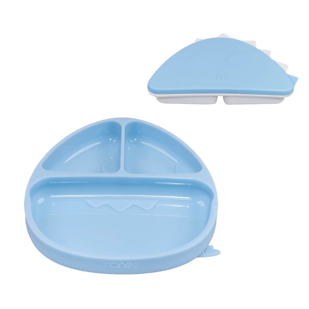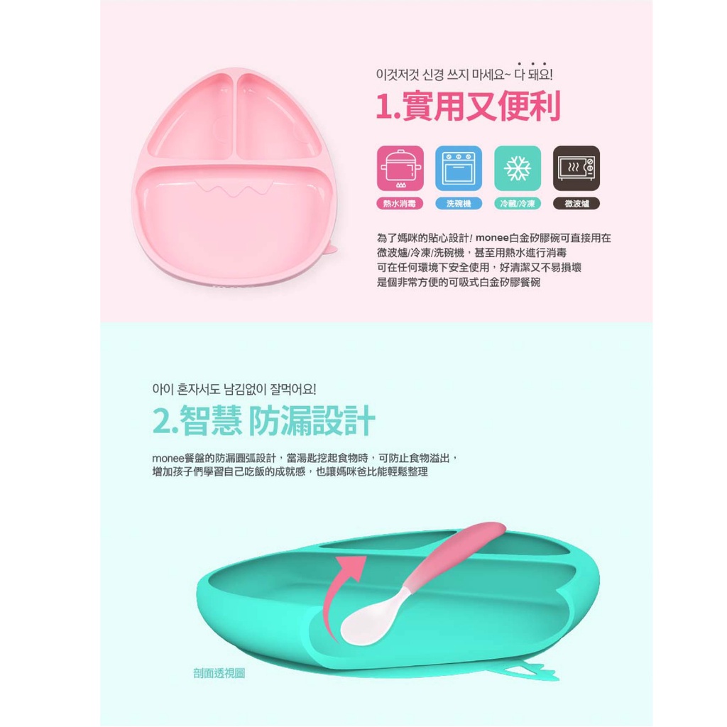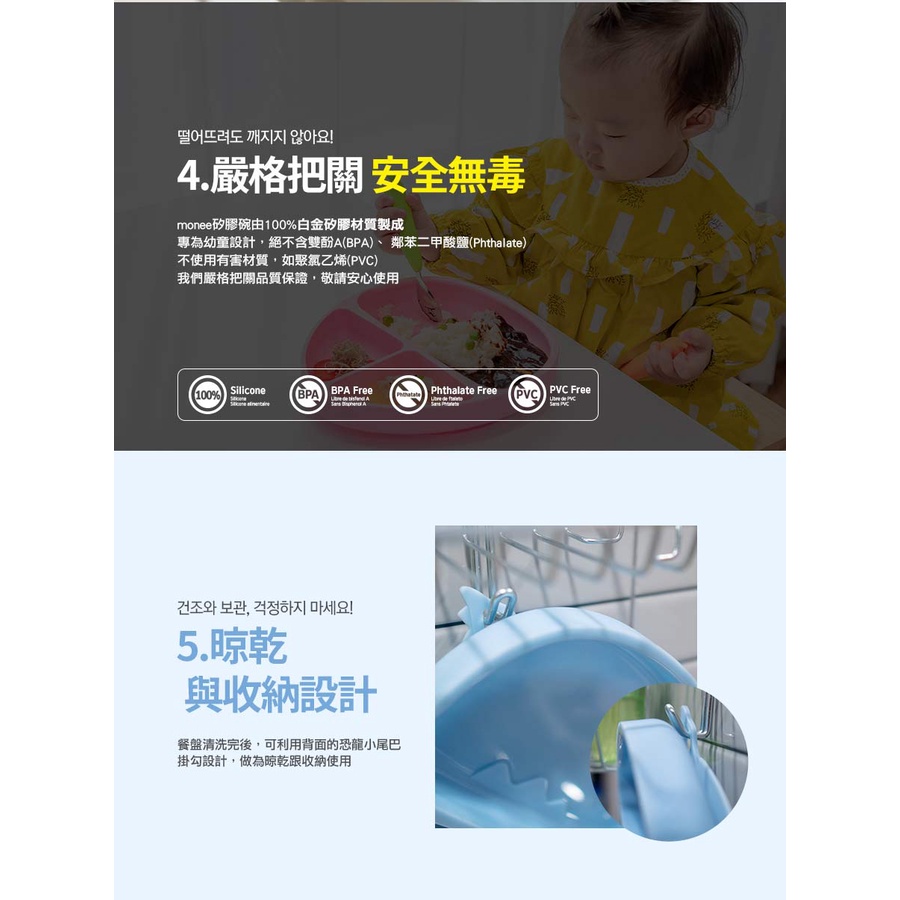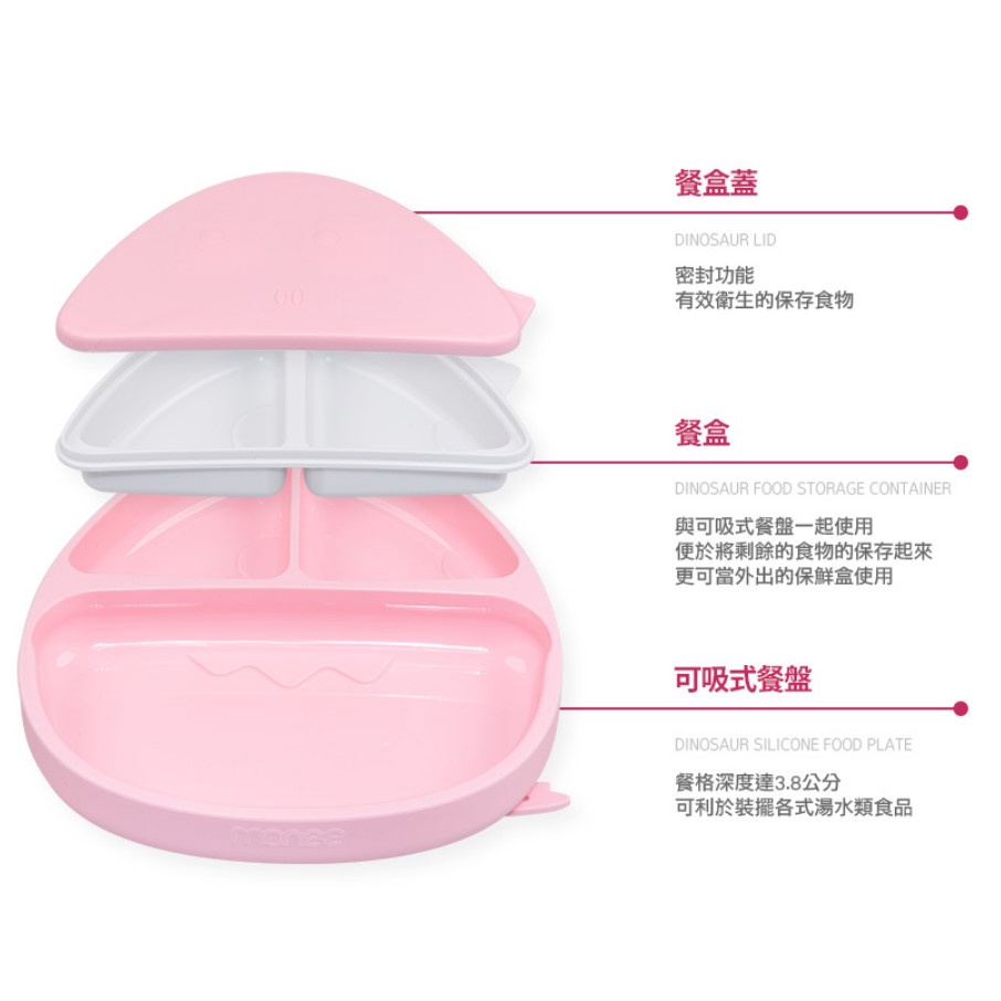 【韓國monee】100%白金矽膠恐龍造型可吸式白金矽膠餐盤/贈同色恐龍餐盒