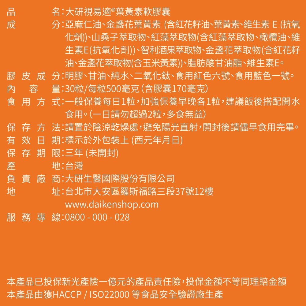 大研生醫 視易適葉黃素 專利游離型葉黃素 舒適濕潤 專業醫師推薦 現貨 公司貨 30粒/盒 [免運速出]