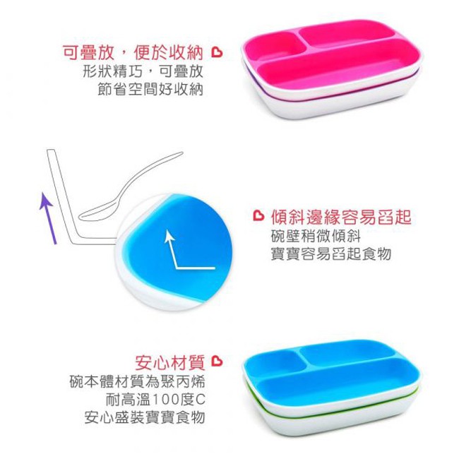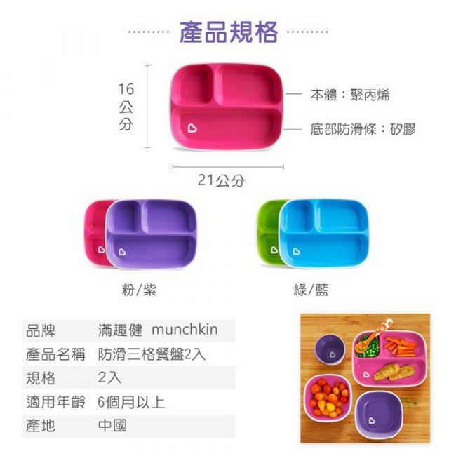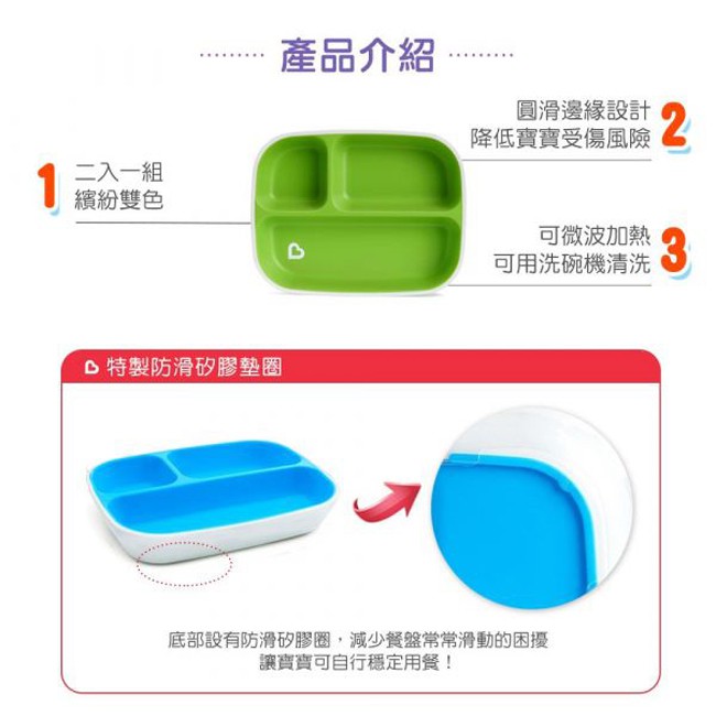 現貨 munchkin 滿趣健 防滑三格餐盤2入|繽紛兩色|可微波加熱|適用6個月以上|原廠公司貨