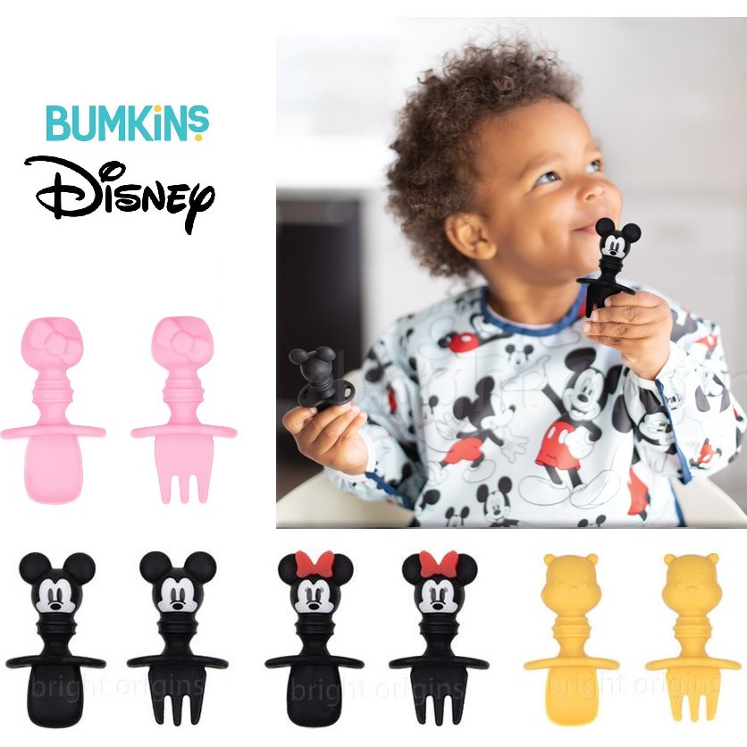 《JC親子嚴選》 Bumkins 湯叉組 矽膠湯叉 學習餐具 學習餐具 迪士尼 米奇 米妮 維尼 kitty【JC】