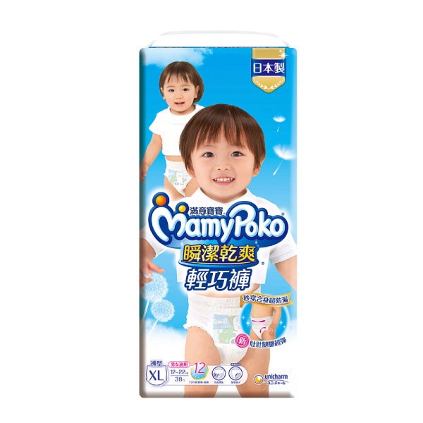 滿意寶寶 瞬潔乾爽輕巧褲 XL號 (38片/4包/箱)【杏一】