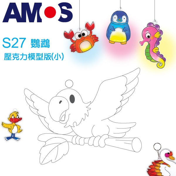 韓國AMOS 壓克力模型版(小)-S27 鸚鵡小吊飾 拓印 壓模 玻璃彩繪 金蔥膠●小幫幫福利社現貨供應●