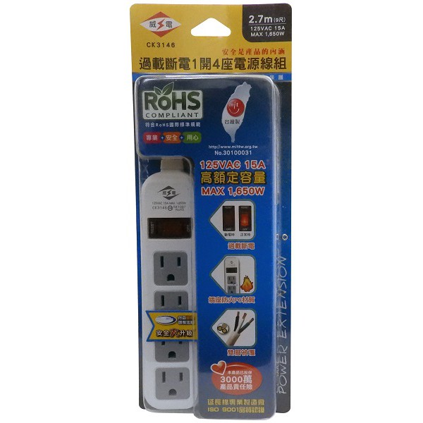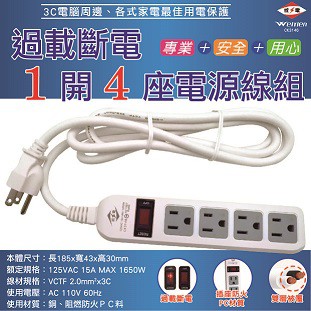 威電 過載斷電1開4座3孔電源線組6尺/9尺 /12尺 CK3146 延長線