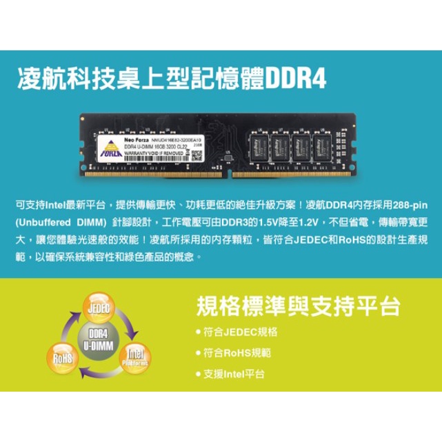 Neo Forza 凌航 DDR4 3200 16G 桌上型記憶體(原生)