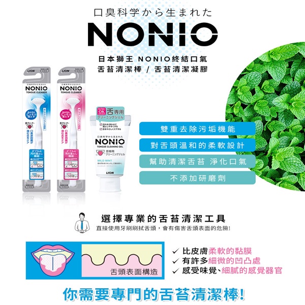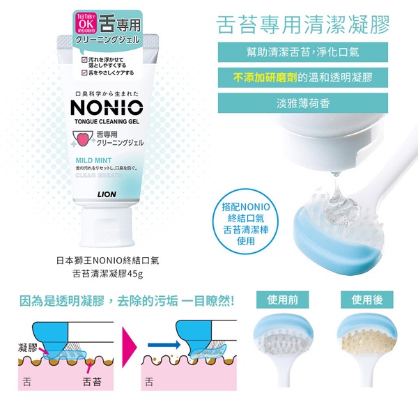 日本獅王NONIO終結口氣舌苔清潔凝膠45g/ 舌苔清潔棒1入(顏色隨機出貨)