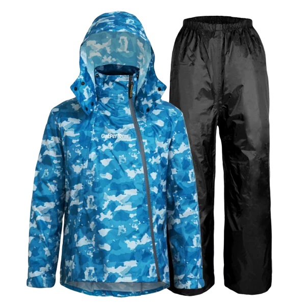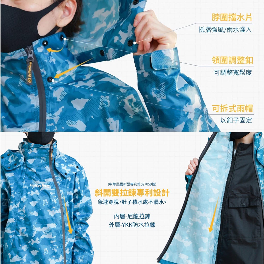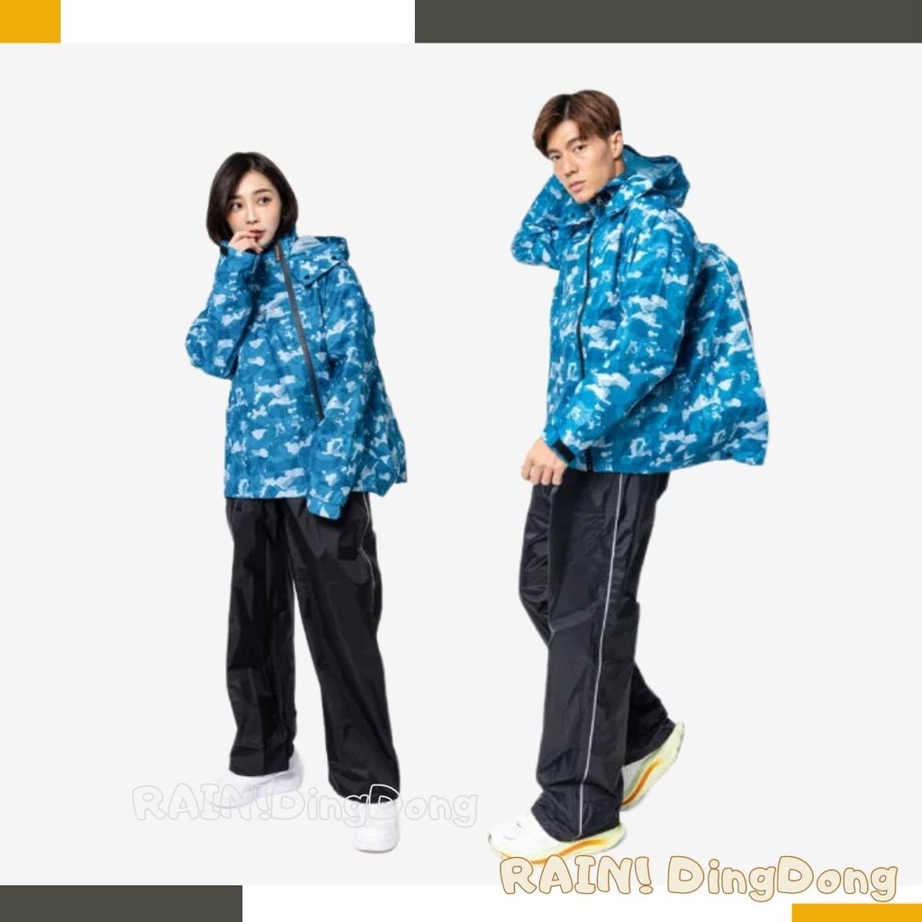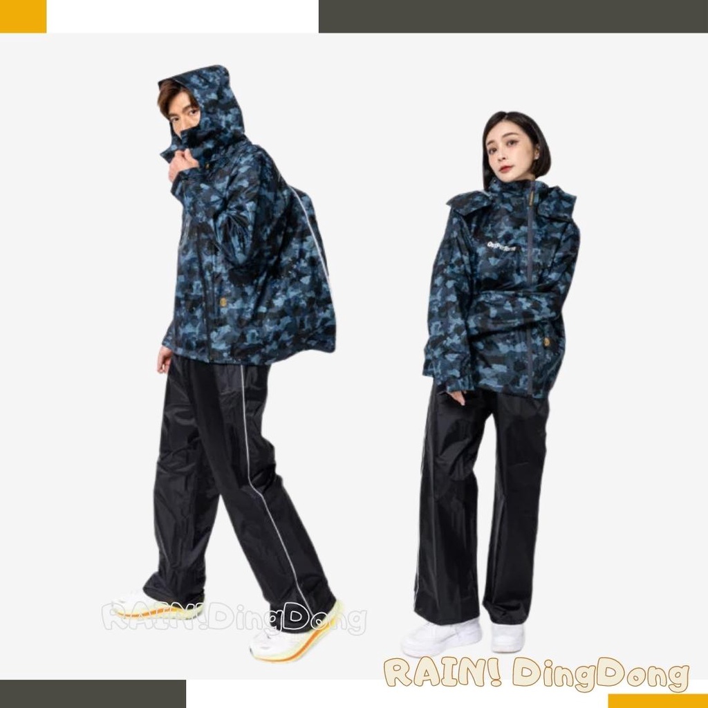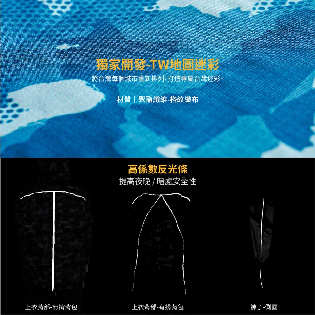 【Rain ! 叮咚】奧德蒙|台灣地圖迷彩 去去雨水走斜開雙拉鍊兩件式【背包款】|兩件式雨衣、機車雨衣