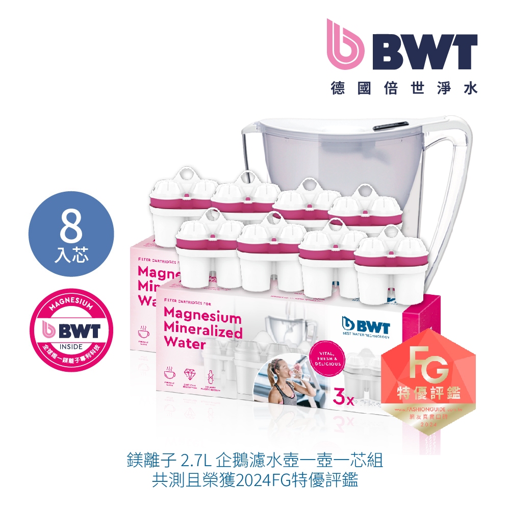 【BWT 德國倍世】2.7L濾水壺 淨水壺 桌上壺 1壺8芯 Penguin企鵝壺 鎂離子濾芯*8