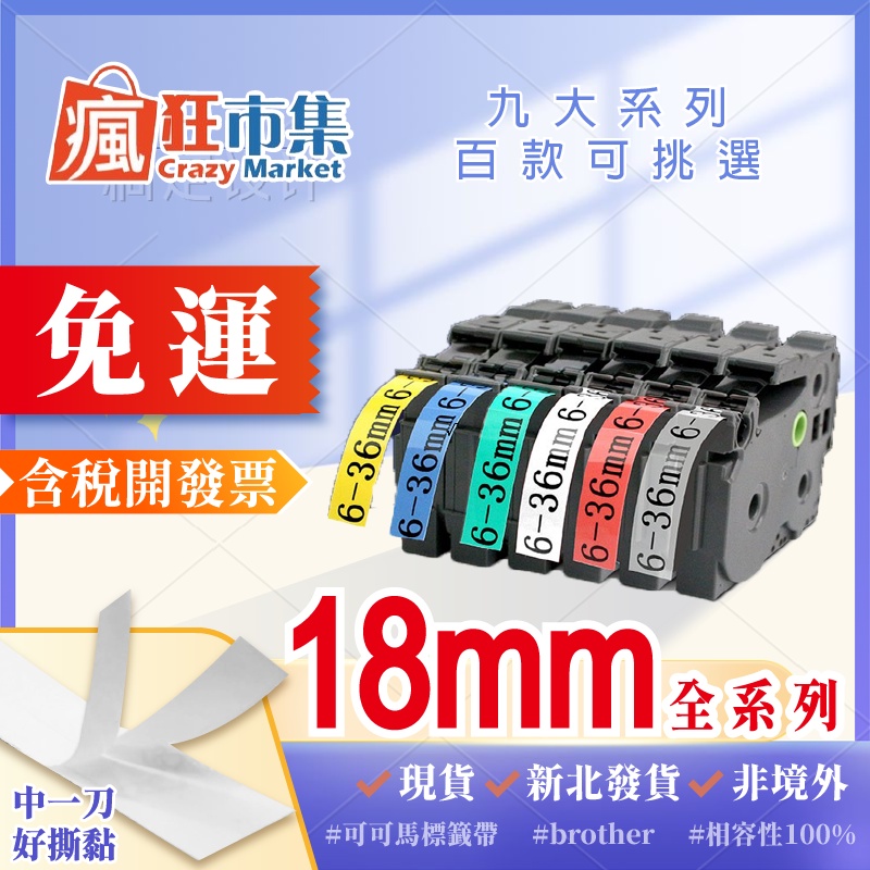 Brother 標籤帶 18MM【瘋狂市集】標準款 相容標籤帶 PT-P750W/P700/P710BT/D600 貼紙