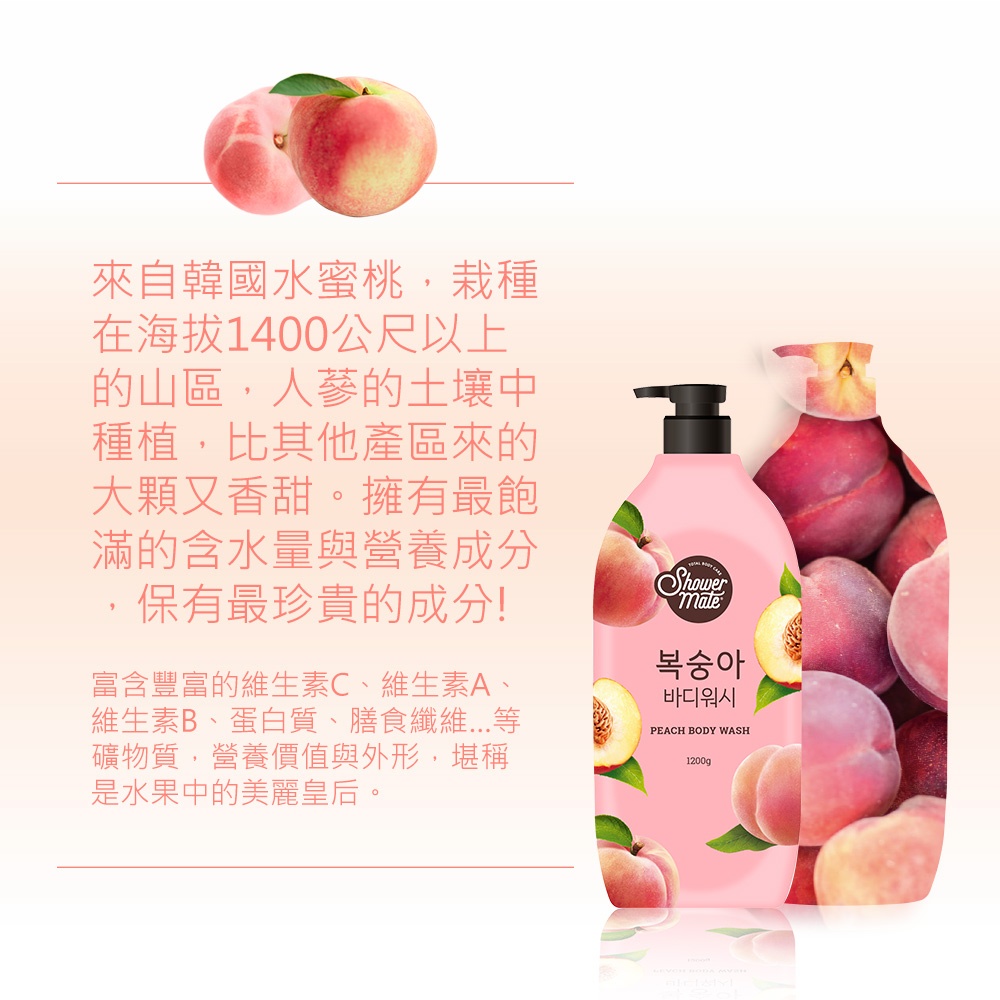 韓國 Shower Mate 微風如沐果香 沐浴乳 1200ml 果香 沐浴 蜜桃 萊姆 蔓越莓 棉花 香甜柚