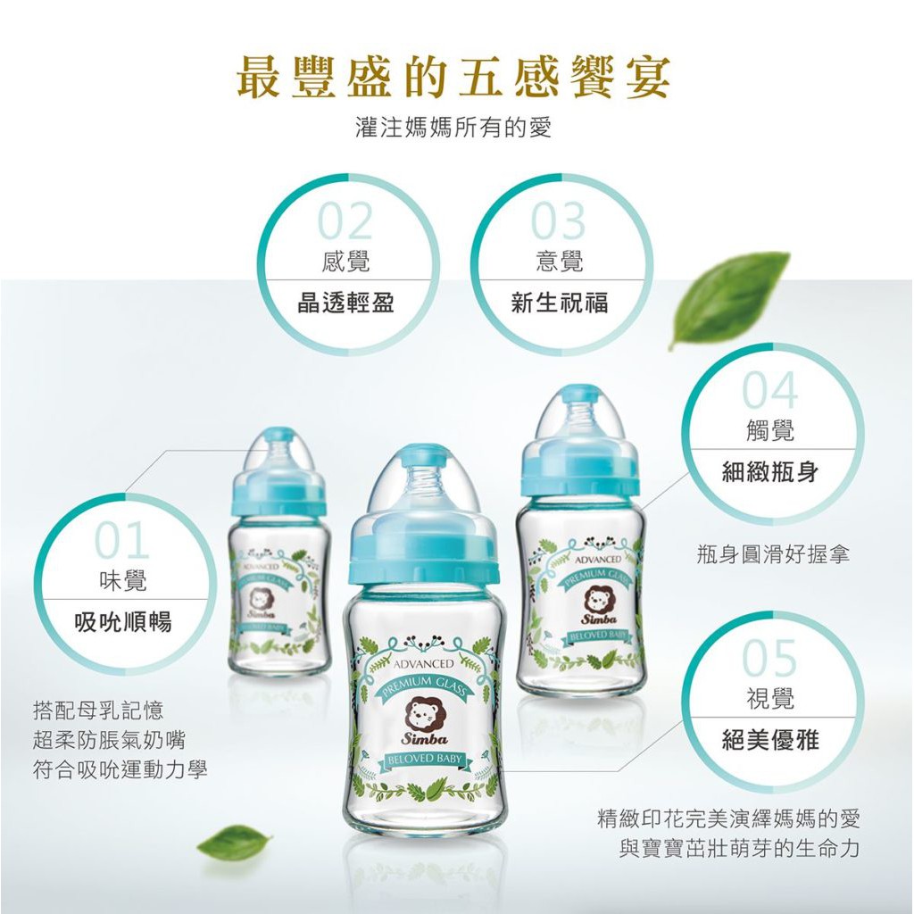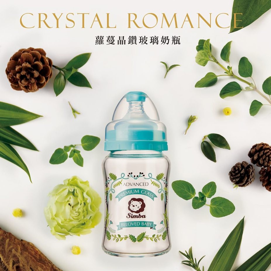 Simba小獅王辛巴 蘿蔓晶鑽寬口玻璃小奶瓶180ml-香草天藍、玫瑰粉紅、豔陽咖啡