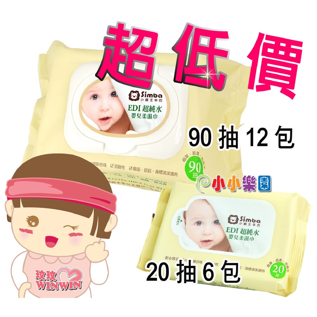 Simba小獅王辛巴EDI超純水嬰兒柔濕巾「小獅王辛巴濕紙巾超厚型90抽x12包+20抽x6包960含運」*小小樂園*