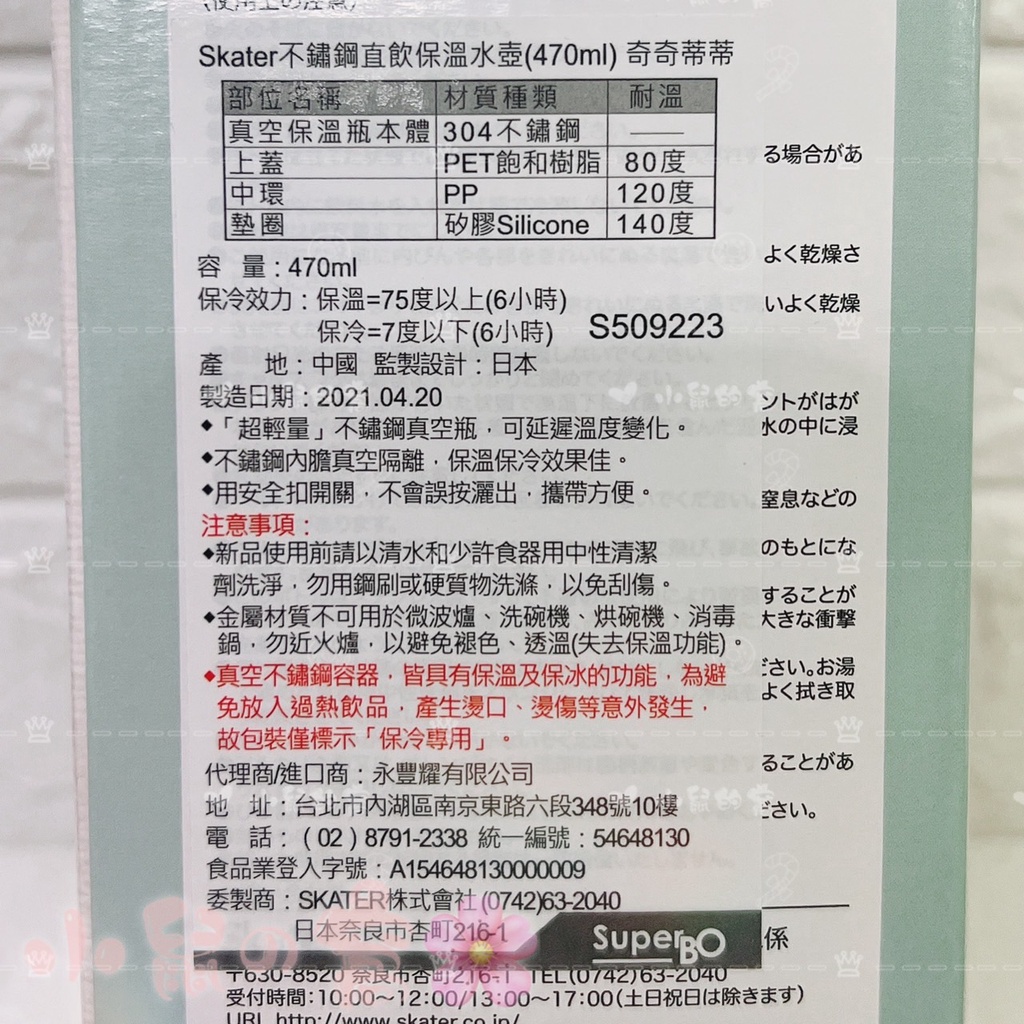 Skater 不鏽鋼直飲保溫水壺 (470ml) 保溫瓶 保冷瓶 直飲水壺 保冷水壺 保溫水壺【公司貨】小鼠的窩🌸