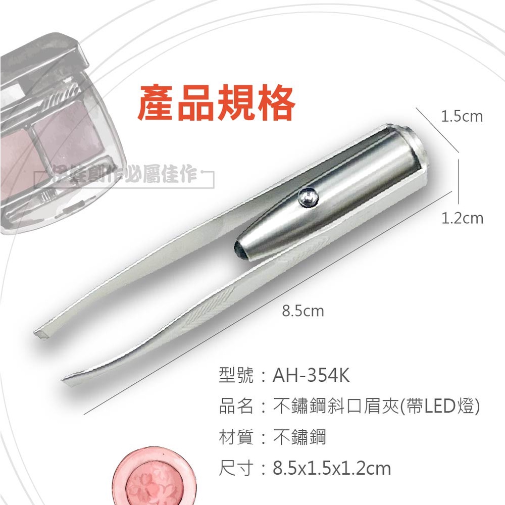 不鏽鋼斜口眉夾 LED燈 AH-354K 眉毛夾 修眉工具 帶燈鑷子 小夾子 美容夾 修眉鉗 除雜毛 拔毛 睫毛夾