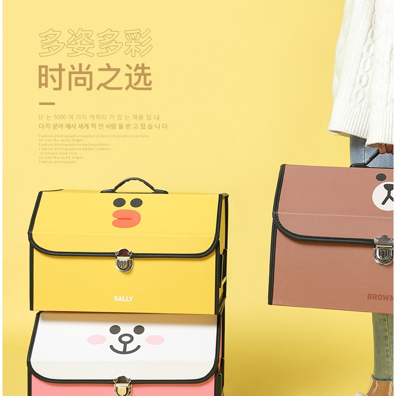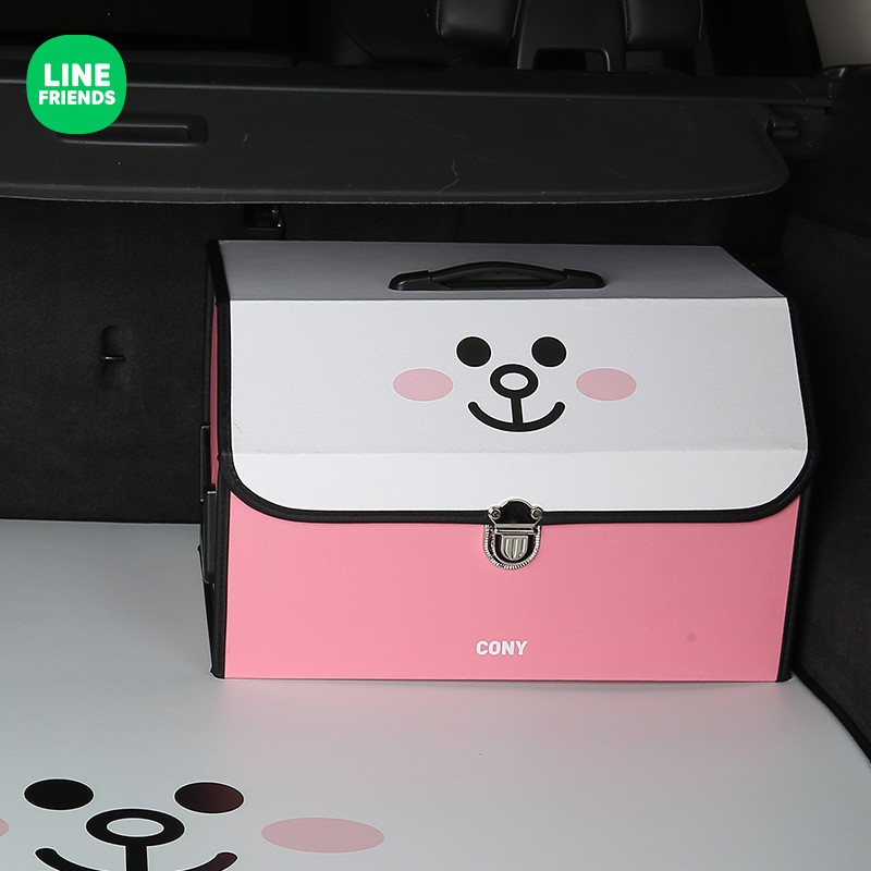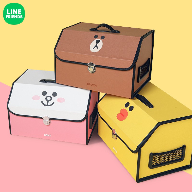 【小符精品】LINE FRIENDS 布朗熊汽車后備箱 儲物箱 車載收納箱 卡通家用置物箱 折疊整理箱 車內置物裝飾