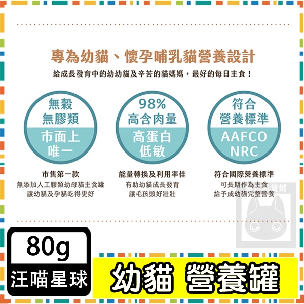 汪喵星球 Dogcatstar 幼母貓98%營養無膠主食罐 | 80g