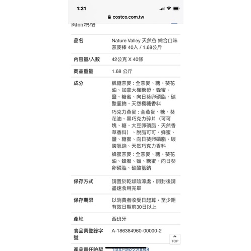 第二賣場現貨(26/2/17)滿30條再送一條拆賣天然谷 綜合口味燕麥棒 42公克 X 40條