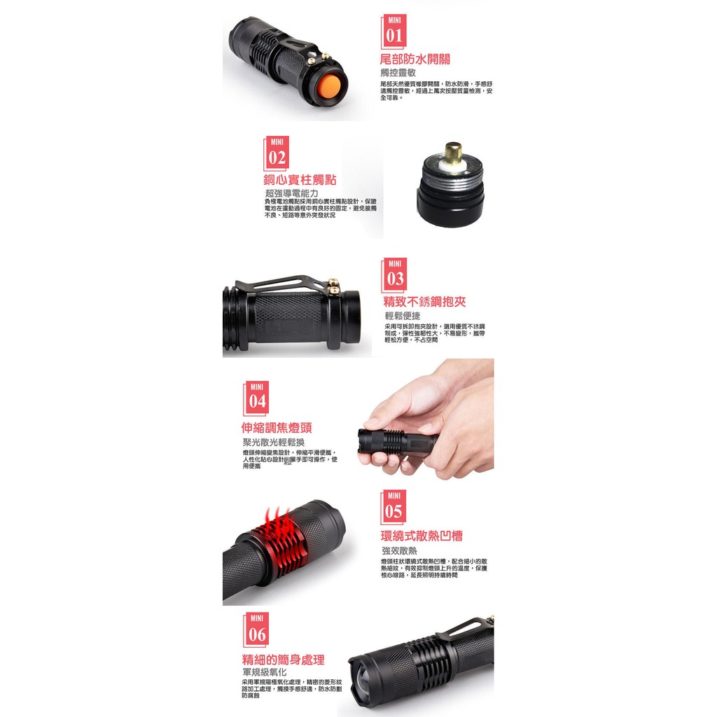 L2變焦迷你夾式強光手電筒套組(含18650電池、車夾、外盒)/現貨 照明 停電