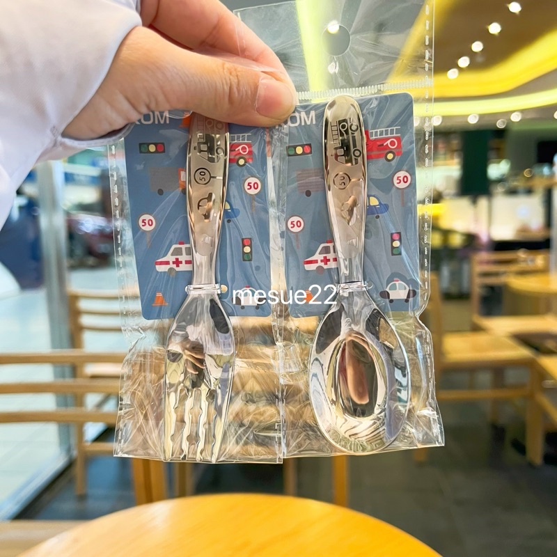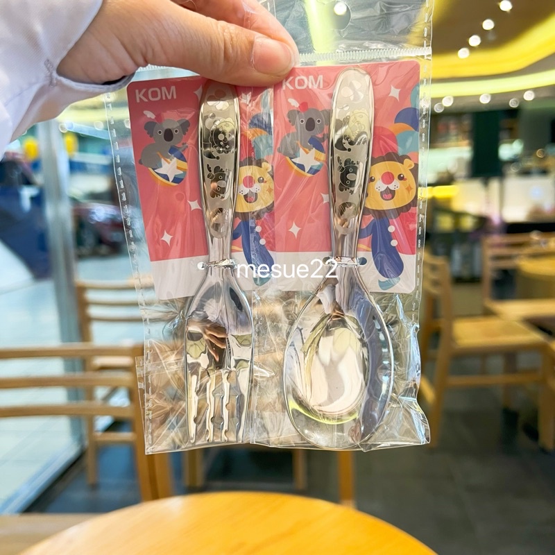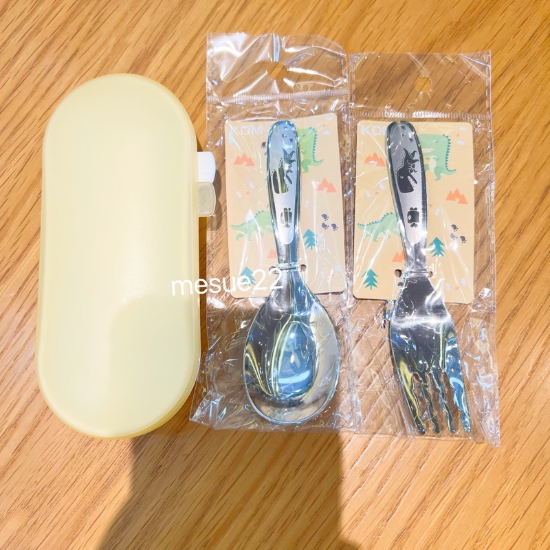 kom兒童316不鏽鋼平底勺湯匙兒童叉子叉勺套裝收納盒 卡通圖案汽車恐龍獨角獸鯨魚企鵝獅子