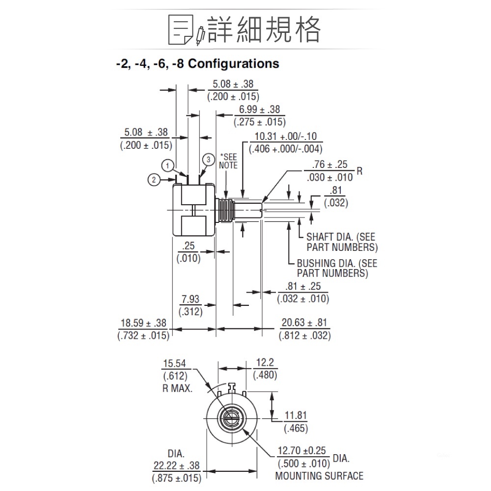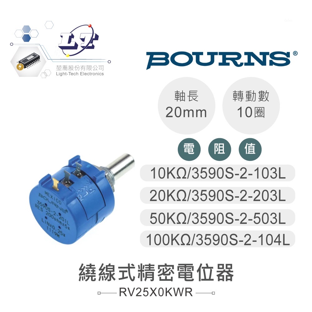 聯騰.BOURNS 22MM十圈電位器|10KΩ~100KΩ多圈微調|美國原廠繞線式