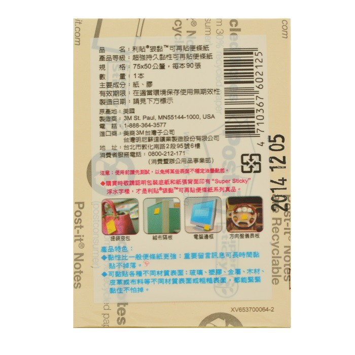 3M 可再貼 狠黏 便條紙 632S 75x50mm 90張/本 自黏便條