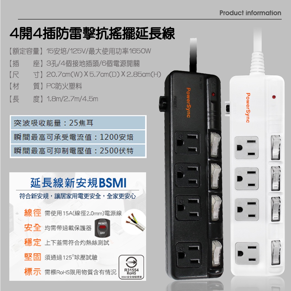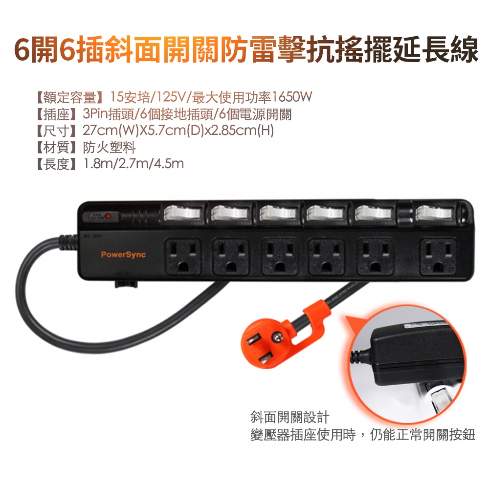 (新安規) 群加 四開四插 六開六插斜面開關設計 防雷擊抗搖擺獨立開關插座 包爾星克原廠電源線延長線