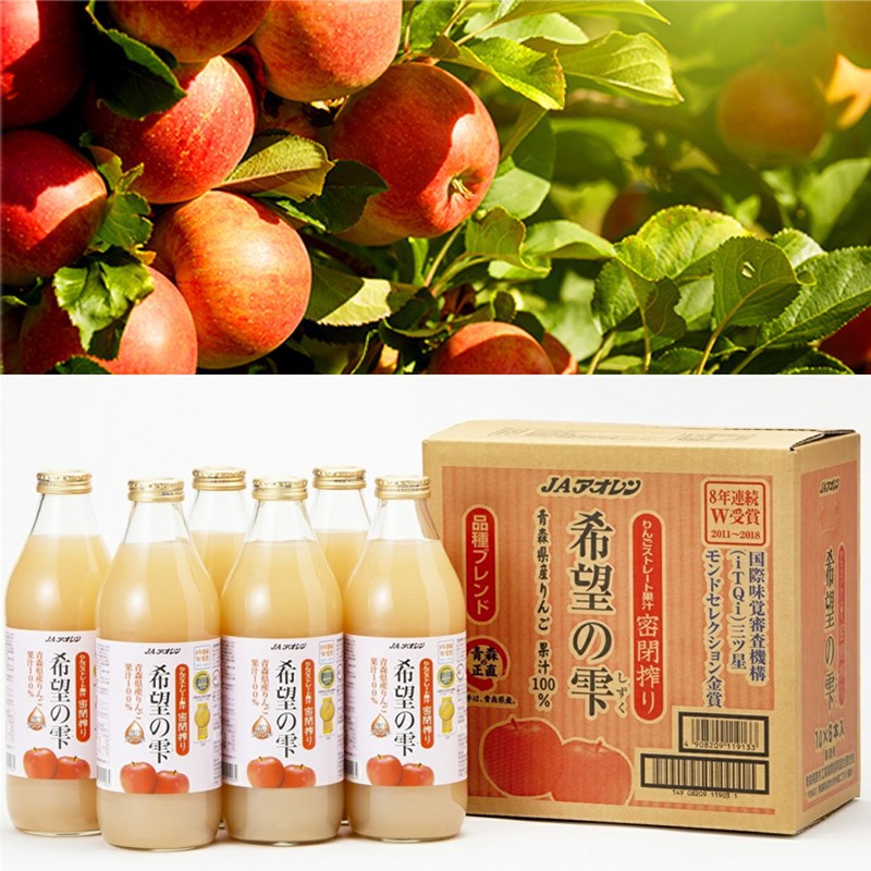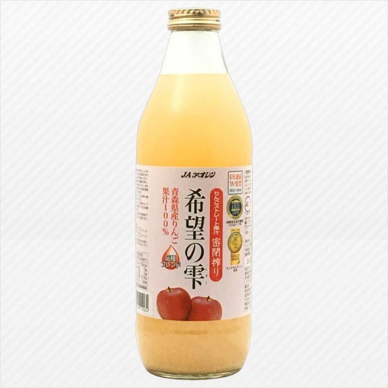 日本 青森蘋果汁 希望の雫 100%蘋果汁 1000ml*6瓶/箱 青森蘋果汁 箱/ 6入