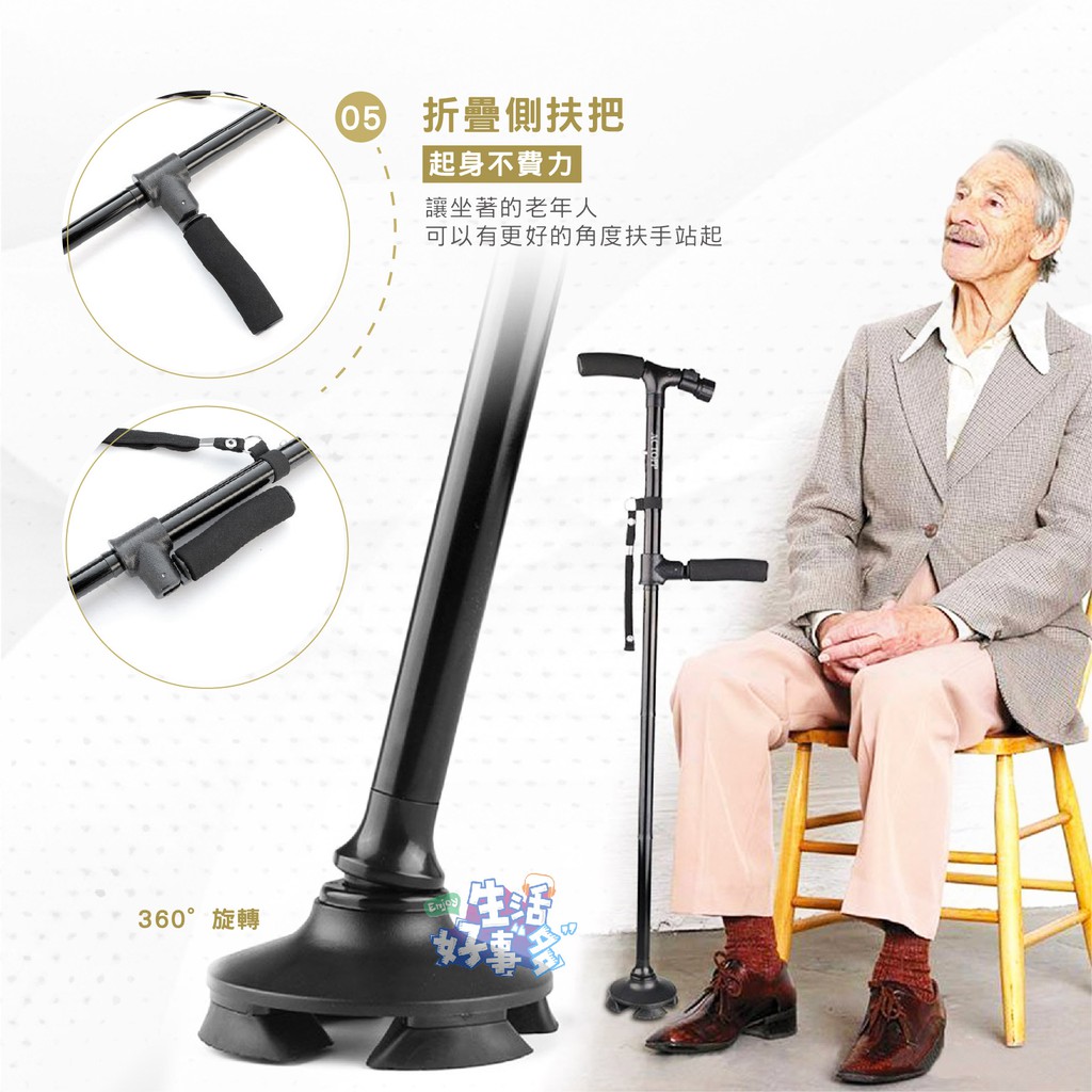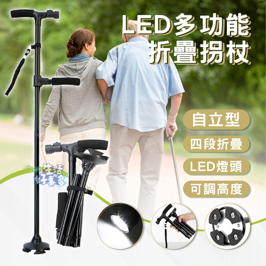 【生活好事多】天天出貨附發票⭐LED長者拐杖,6061鋁合金款,老人拐杖,長者登山杖,摺疊登山杖,折疊登山杖,伸縮登山杖