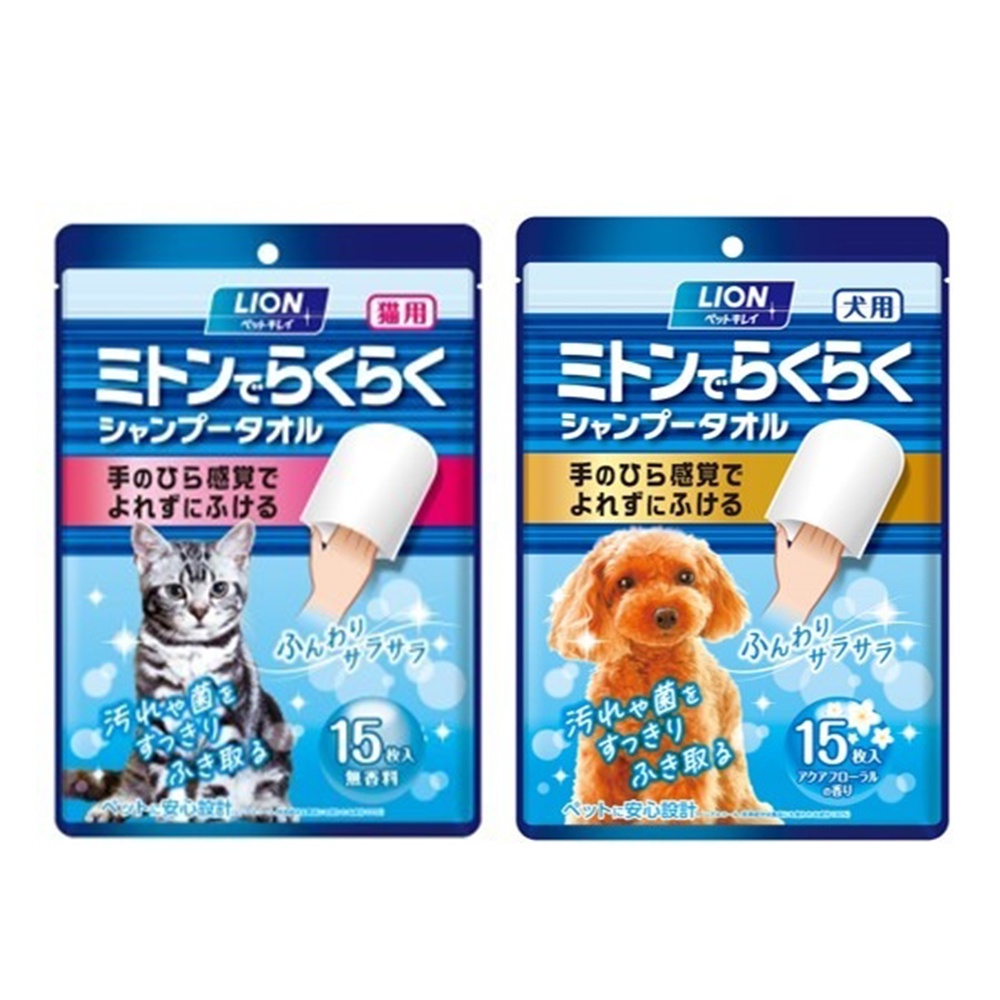 【LION獅王】手套型潔膚濕巾15枚 犬用(花香)/貓用(無香)