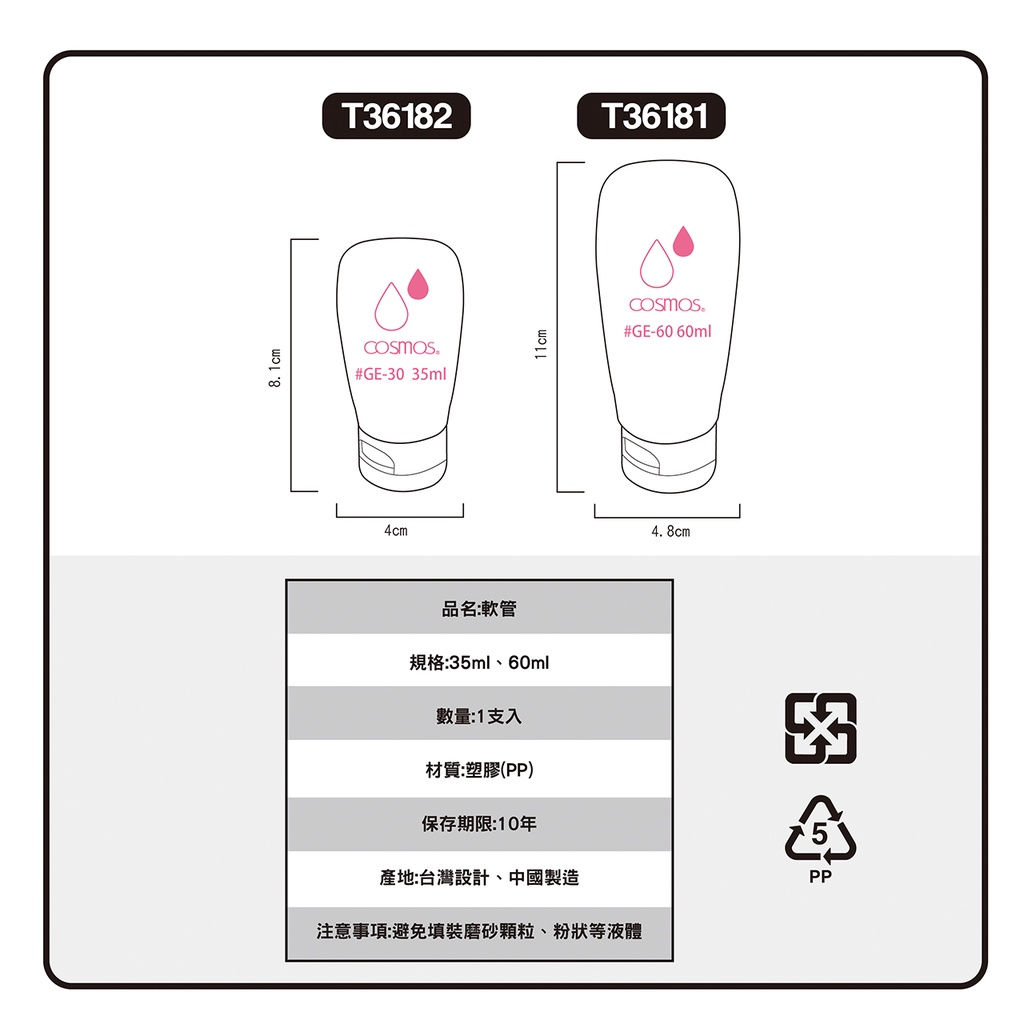 開發票 cosmos 35ml/60ml 軟管 多款供選 分裝瓶 旅行